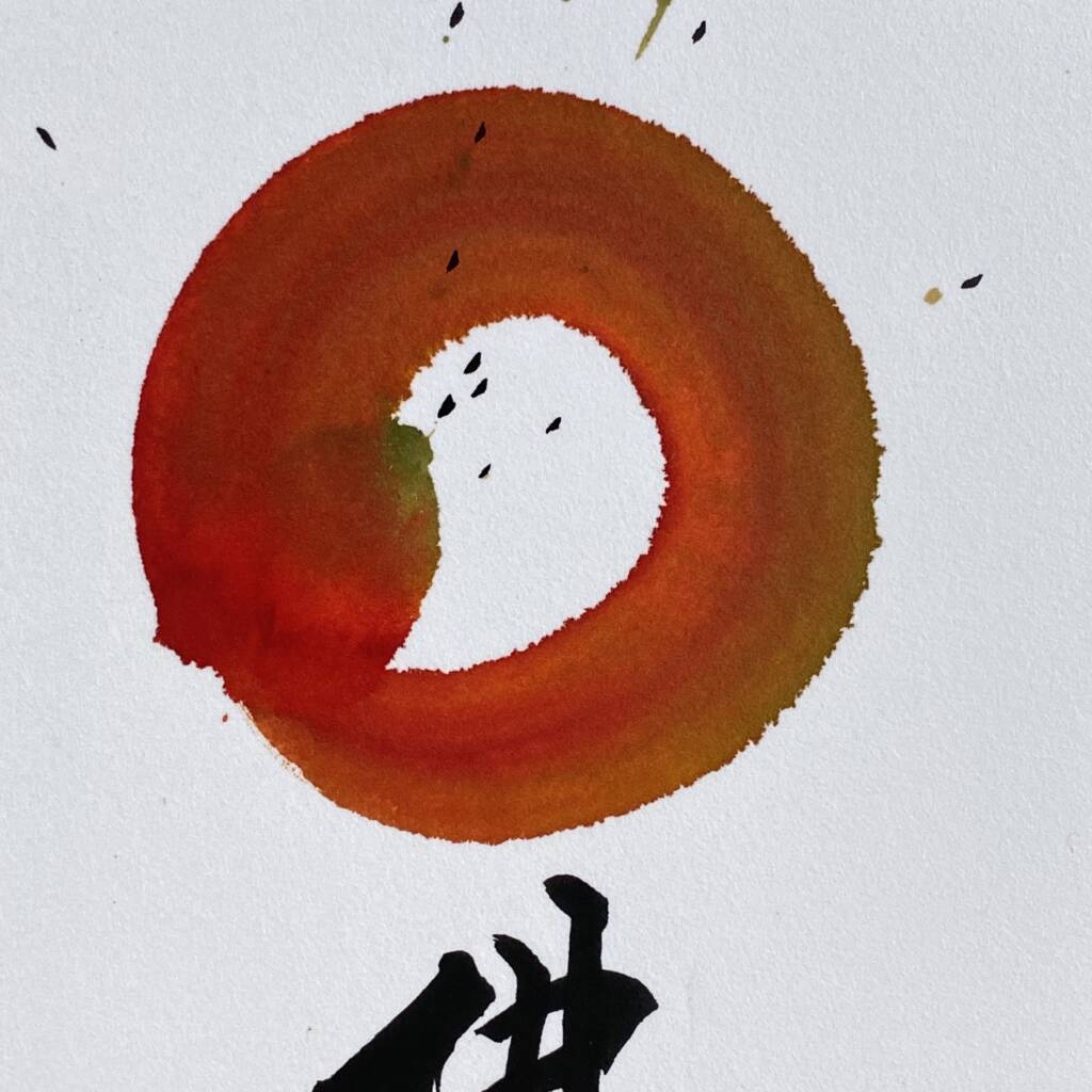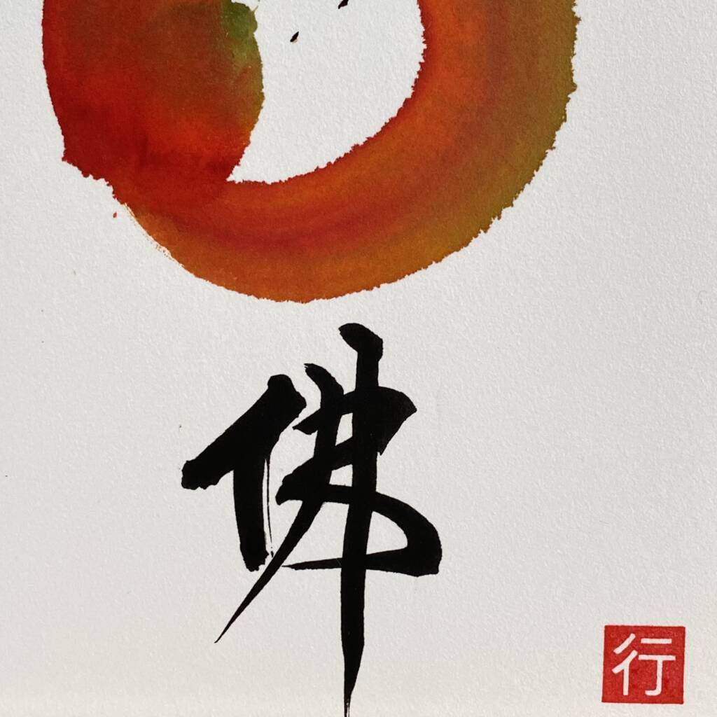 La calligrafia sotto l’enso è Butsu che significa “Buddha”.